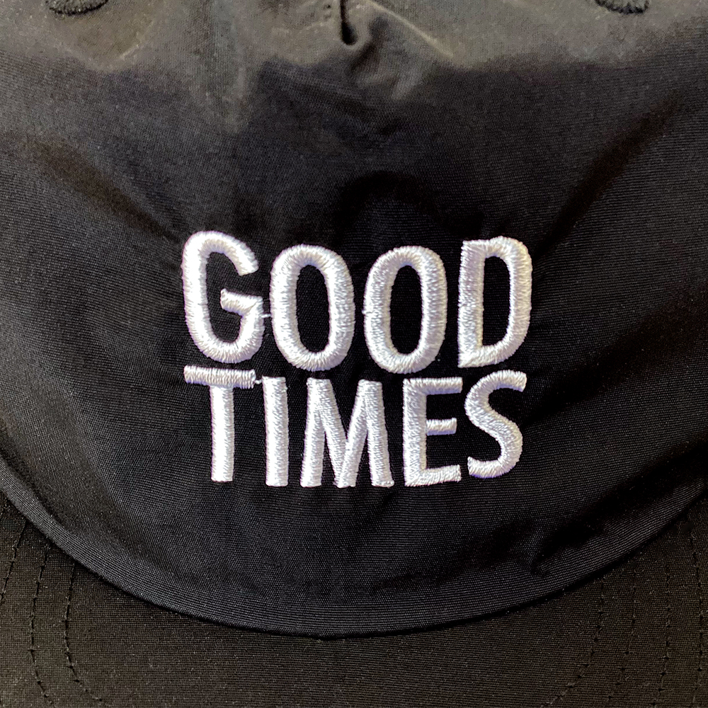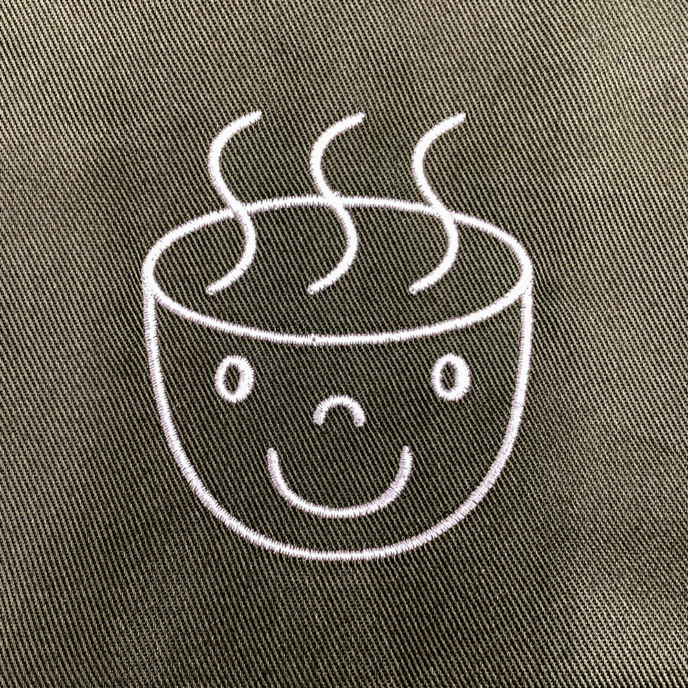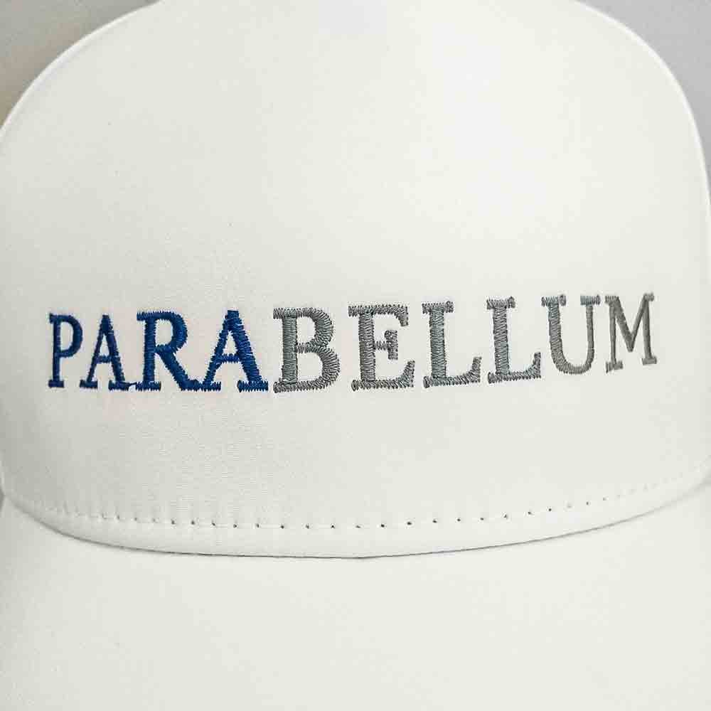お持ち込みのキャップへ横5cmで刺繍を行っています。糸色はホワイト(23-98)。