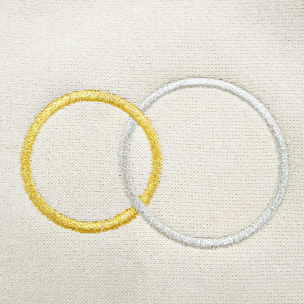 TP-0017_10 厚手コットンポーチ巾着(M)へのオリジナル刺繍です。糸色:ベビーブルー(14-644) サイズ:横80mm×高さ36mm