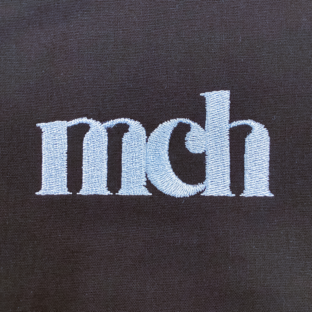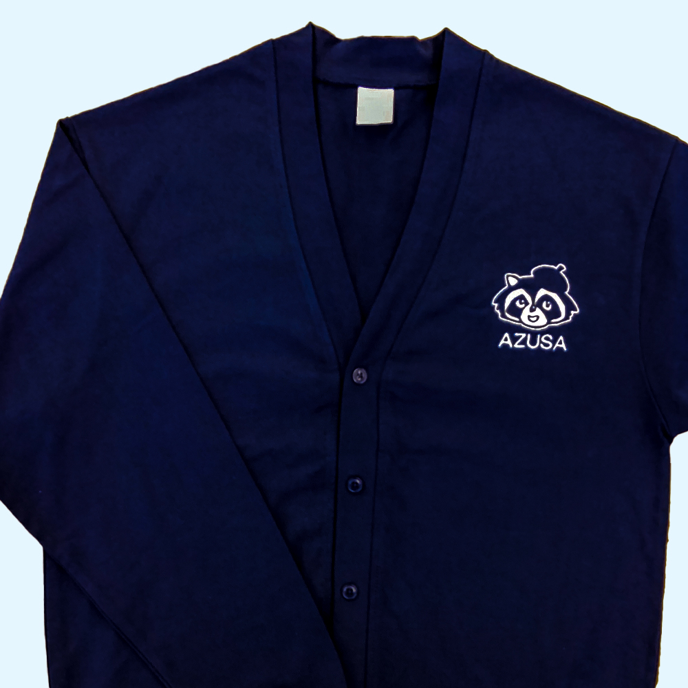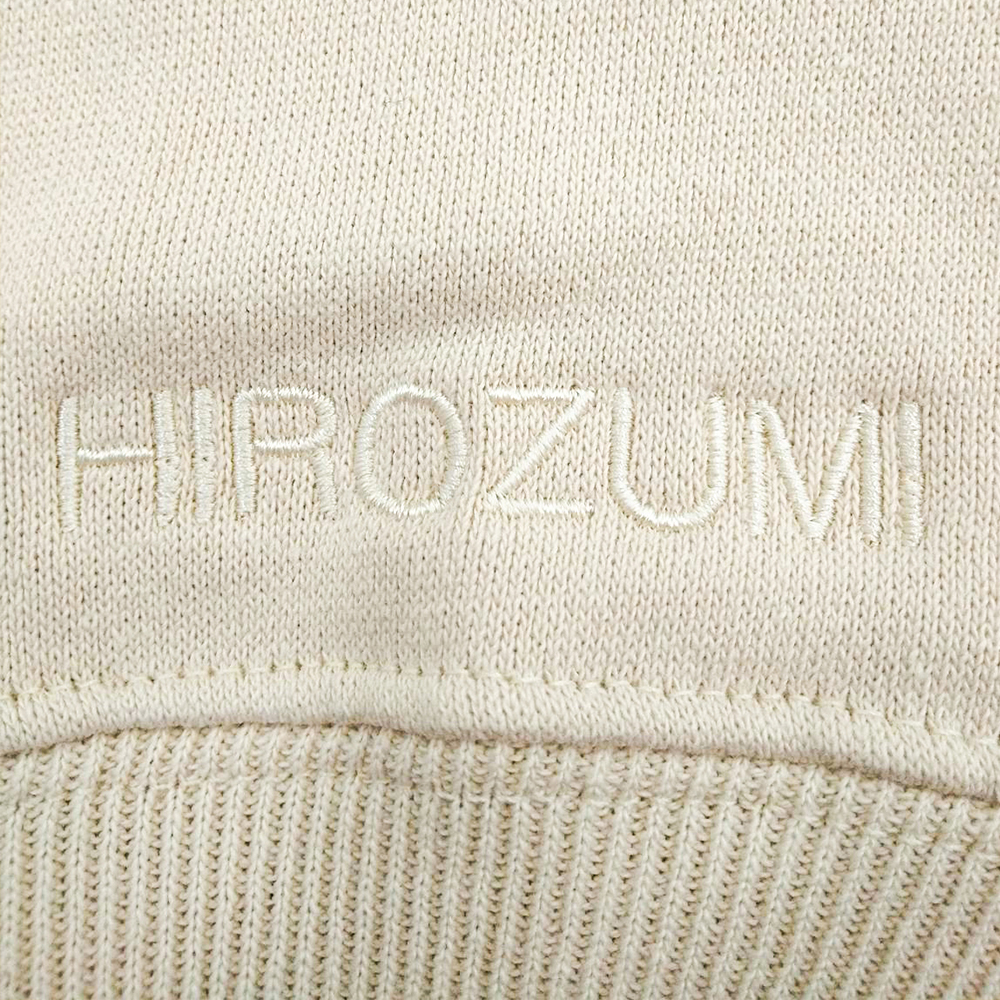 4488 10.0オンス コットン ジャージー ルーズフィット カーディガンへオリジナル刺繍を横7.5cm×高さ約5.9cm程度で、ネーム刺繍をA-5.丸ゴシックにて1文字1.2cmで行いました。いずれも糸色はホワイト(23-98)です。
