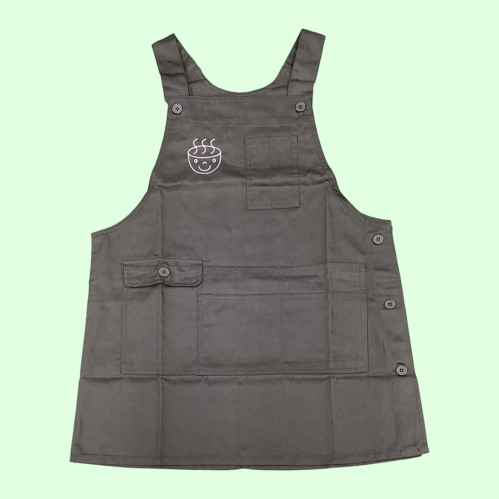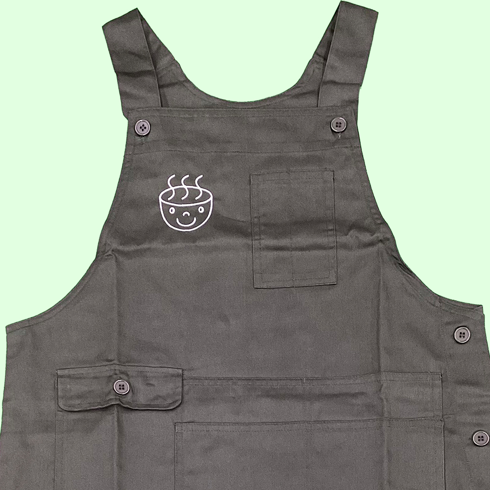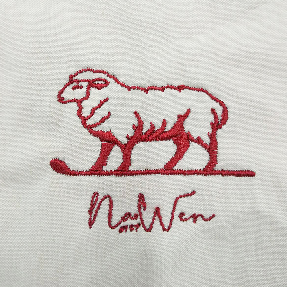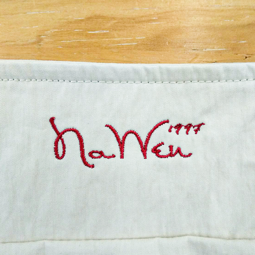 お持ち込みのエプロンに横6cm×縦約6.7cmにて刺繍しています。糸色:ホワイト(23-98)