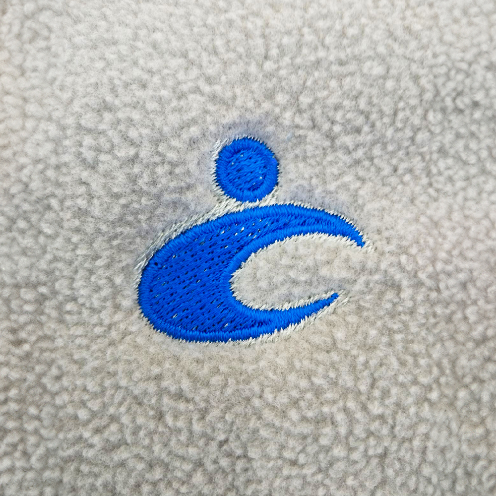 MJ0065 フリースジャケットへオリジナル刺繡を横3cmで行っています。