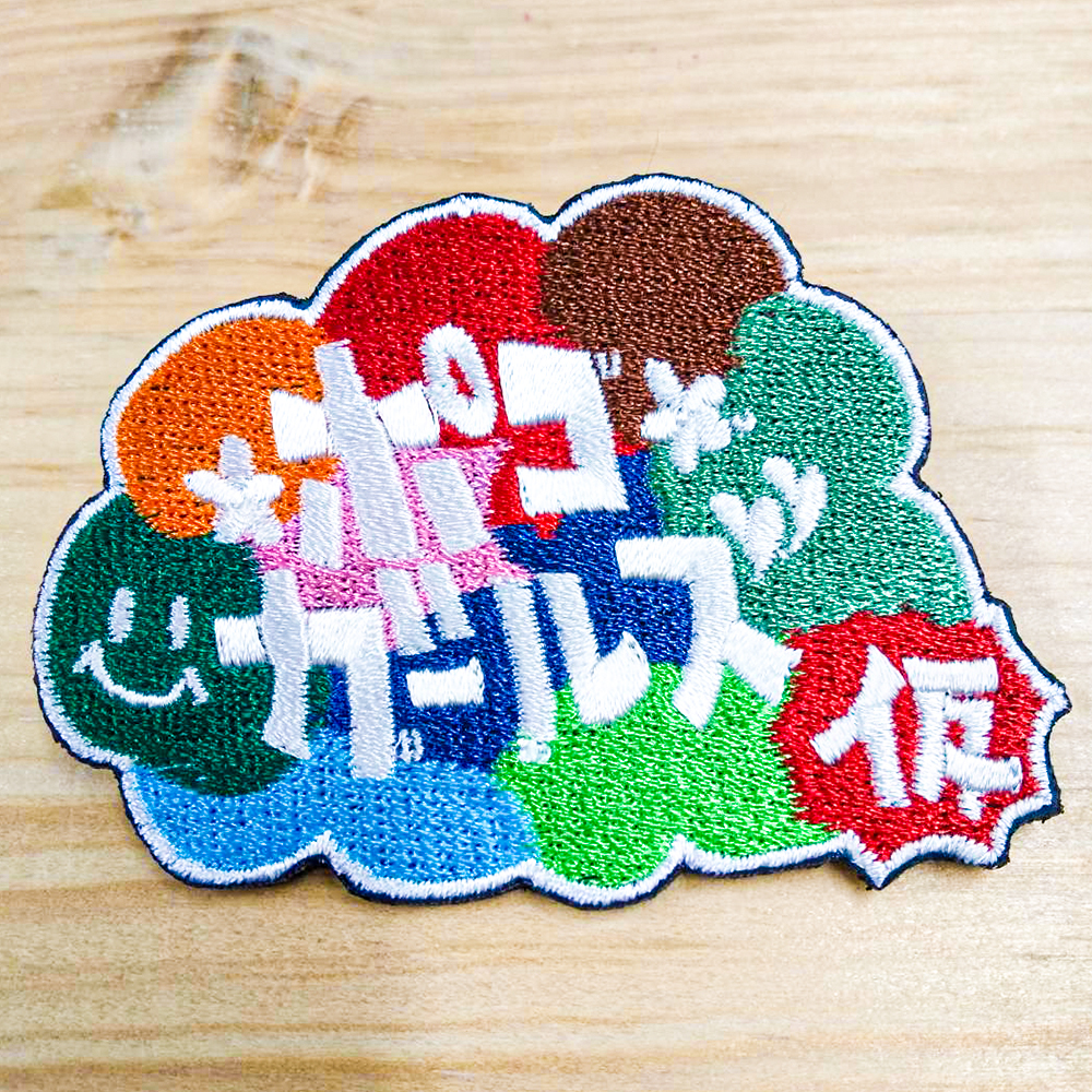 10色の糸を使用したカラフルでワッペン土台はフェルト、裏面は安全ピン加工を施しました。