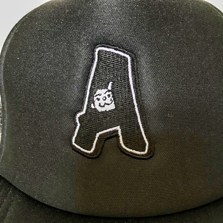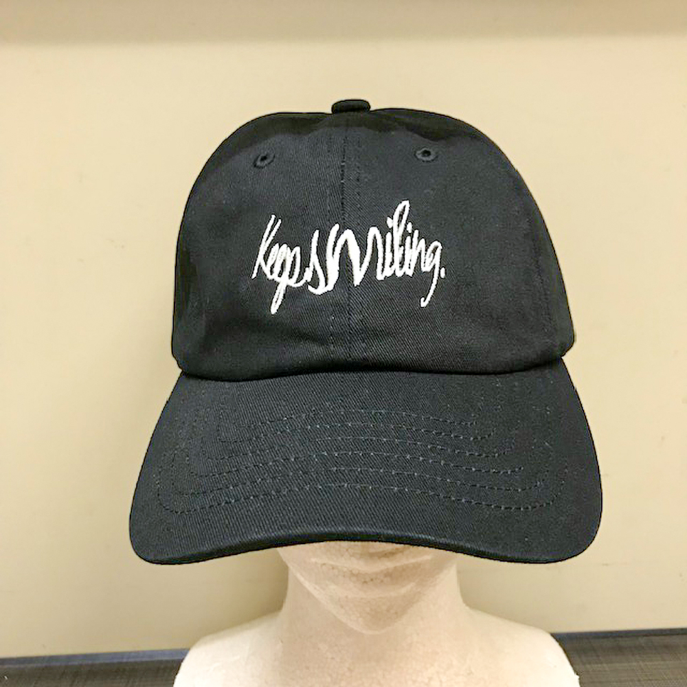 キャップの前面に大きく手書き風ロゴを刺繍しました。