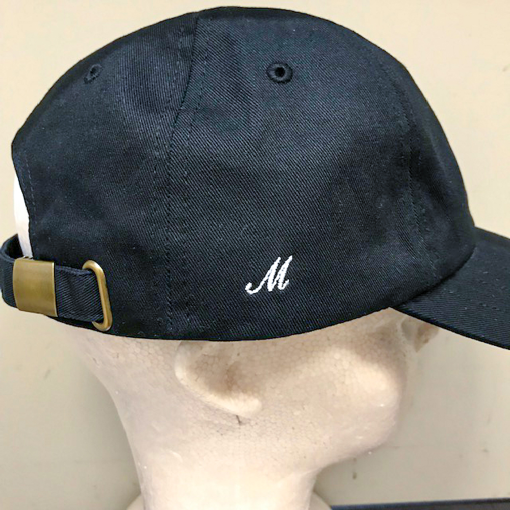 キャップのサイドに「M」のイニシャル刺繍を施しました。前面にはあえて何もいれないことで、さりげないアクセントになっています!