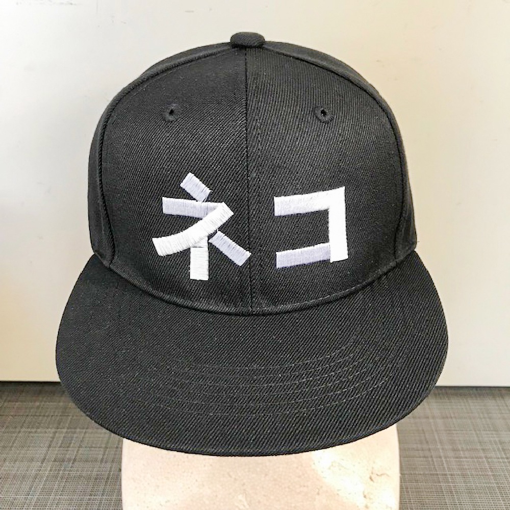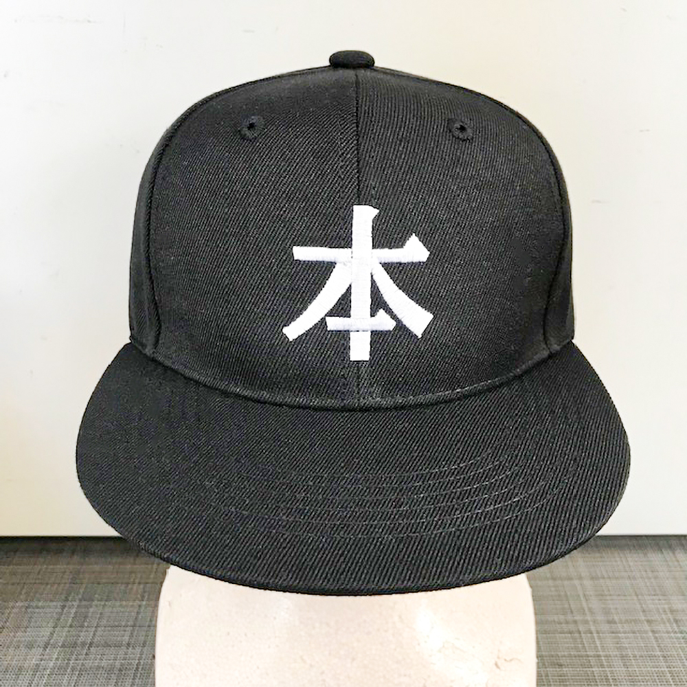 キャップの前面に大きく文字を刺繍することで、シンプルながら個性的な仕上がりに!