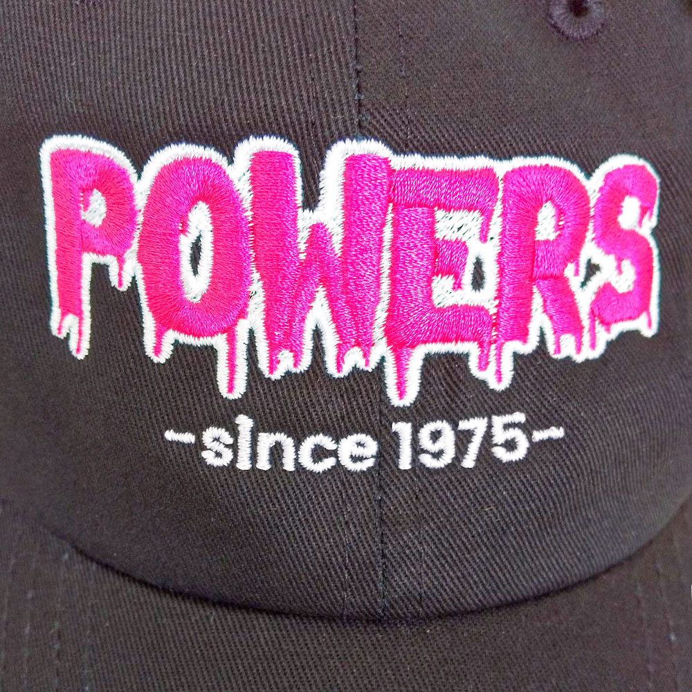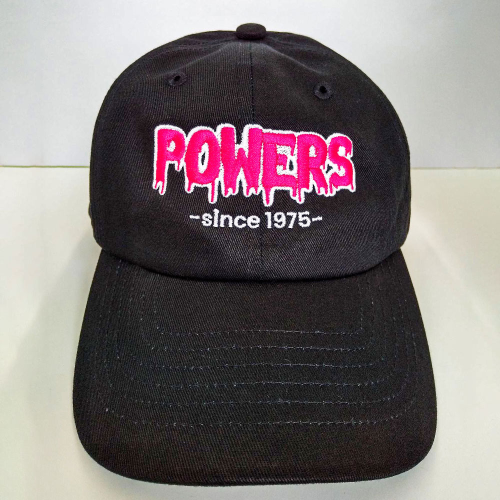 コットン ツイル ロー キャップの黒にホットピンクの刺繍糸はとても映えています!