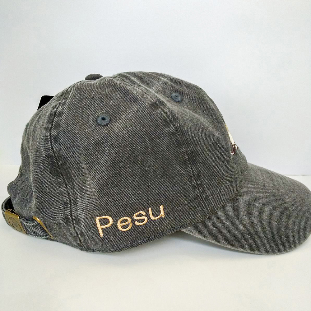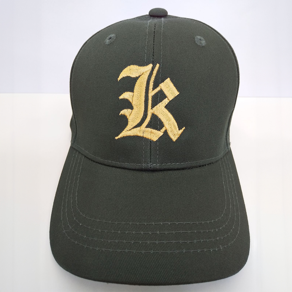 お持込みのキャップに刺繍を行いました。サイズは前面:高さ5㎝、背面:高さ6㎝。