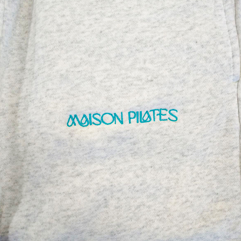 お持込みスウェットパンツに横10cmにて糸色エメラルド(15-92)で刺繍を行いました