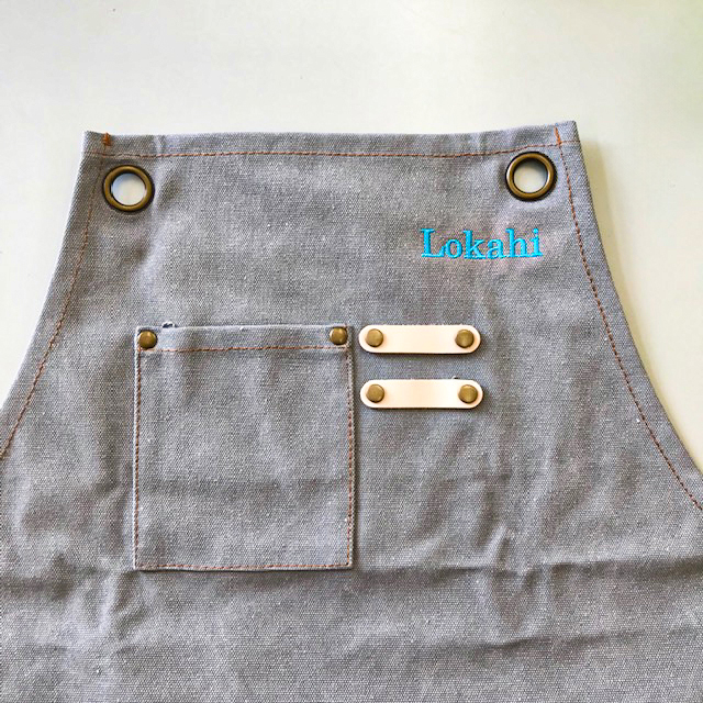 名入れ刺繍が映えるおしゃれなエプロン。