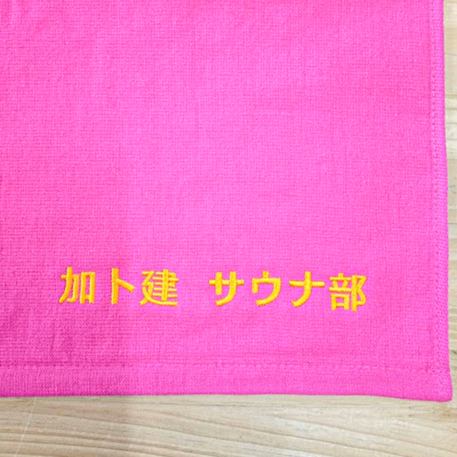 お持込みのタオルへのネーム刺繍です。ノベルティ用としてご依頼いただきました。