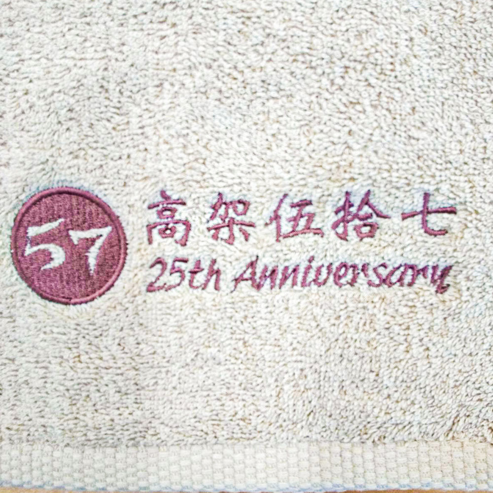 0120-093-777お持込みのタオルへのネーム刺繍です。ノベルティ用としてご依頼いただきました。