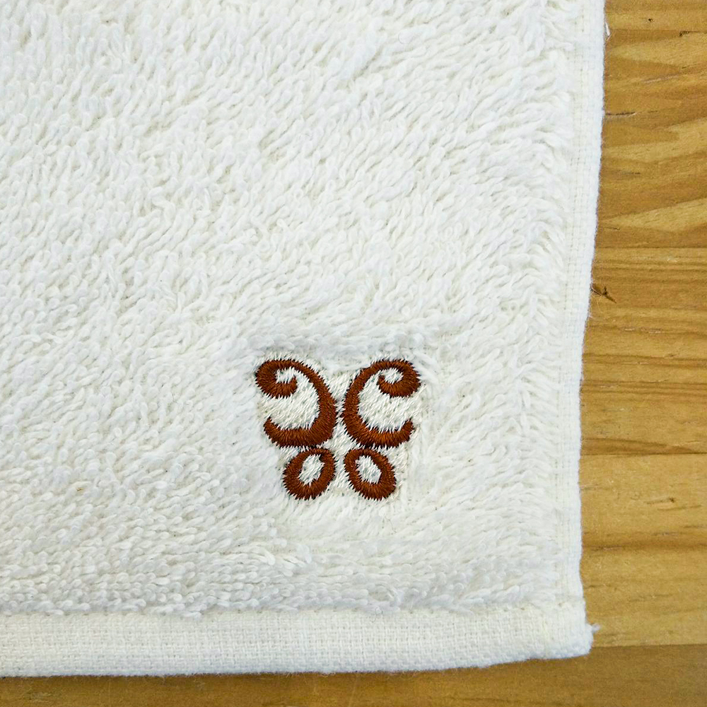 お持込みのタオルにオリジナル刺繡を行いました。糸色:チョコレート(10-624) サイズ:横約10cm