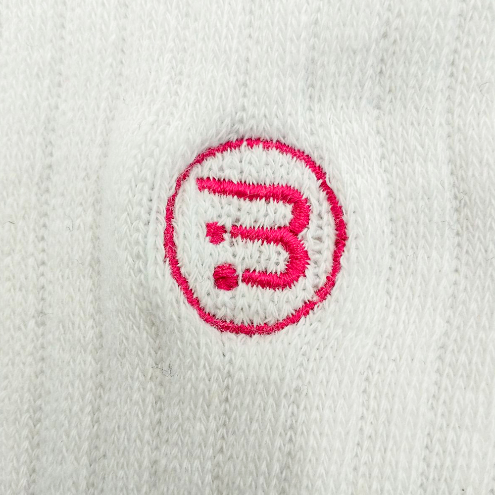 靴下にオリジナルロゴを刺繍しました。