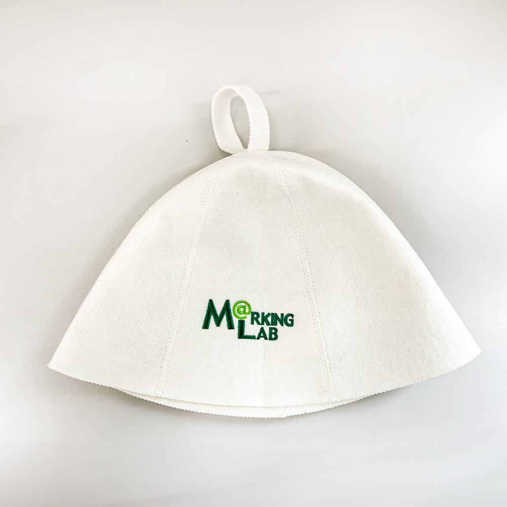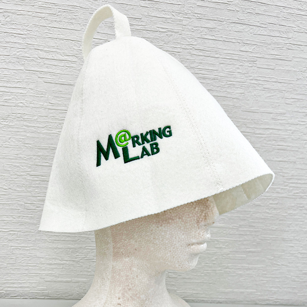 当サイトのロゴを 08-088_10 サウナハット(フェルト)に刺繍しました。