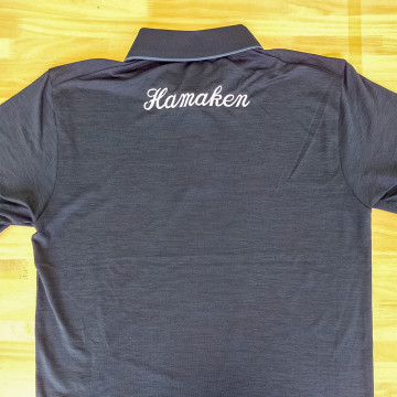 お持ち込みのポロシャツにシルクスクリーンプリントで背面に大きくプリントしました。プリントカラー:C-21ホワイト