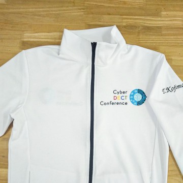 お持込みのジャンパーにDTF転写プリントにてプリントいたしました。