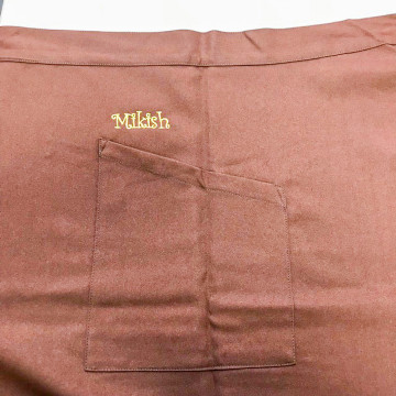 エプロンへの加工は耐久性が一番ある刺繍またはシルクスクリーンプリントがおすすめです。