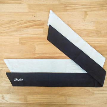 お持込みの襷にネーム刺繍を行いました。1文字2cm角、糸色シャンパンゴールド,