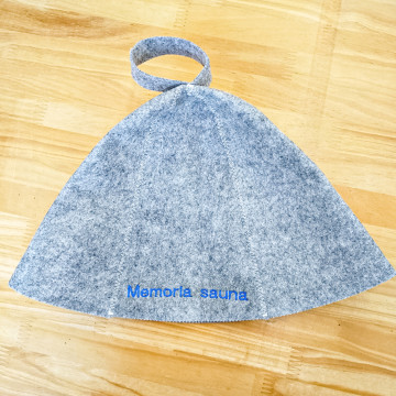 当サイトのロゴを 08-088_10 サウナハット(フェルト)に刺繍しました。