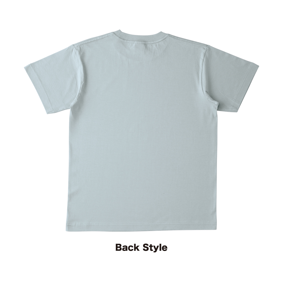 00086-DMT 5.0オンス ベーシックTシャツへ前面左胸、背面右裾部分にDTF転写プリントを行いました。前面左胸横幅5cm、背面右下横幅10cmのサイズです。