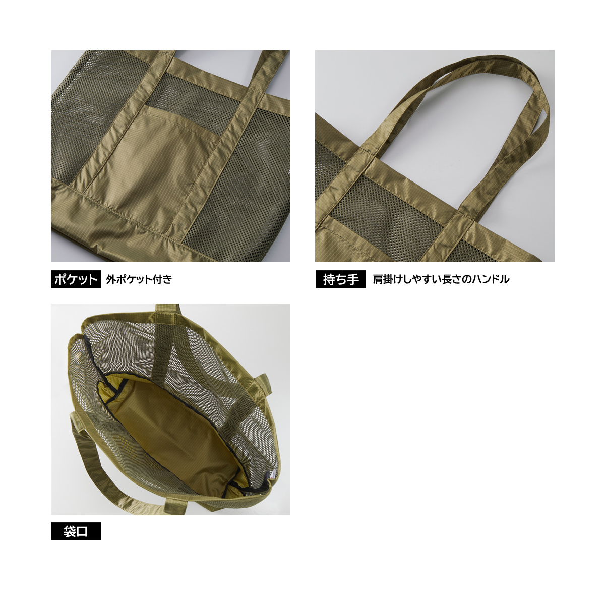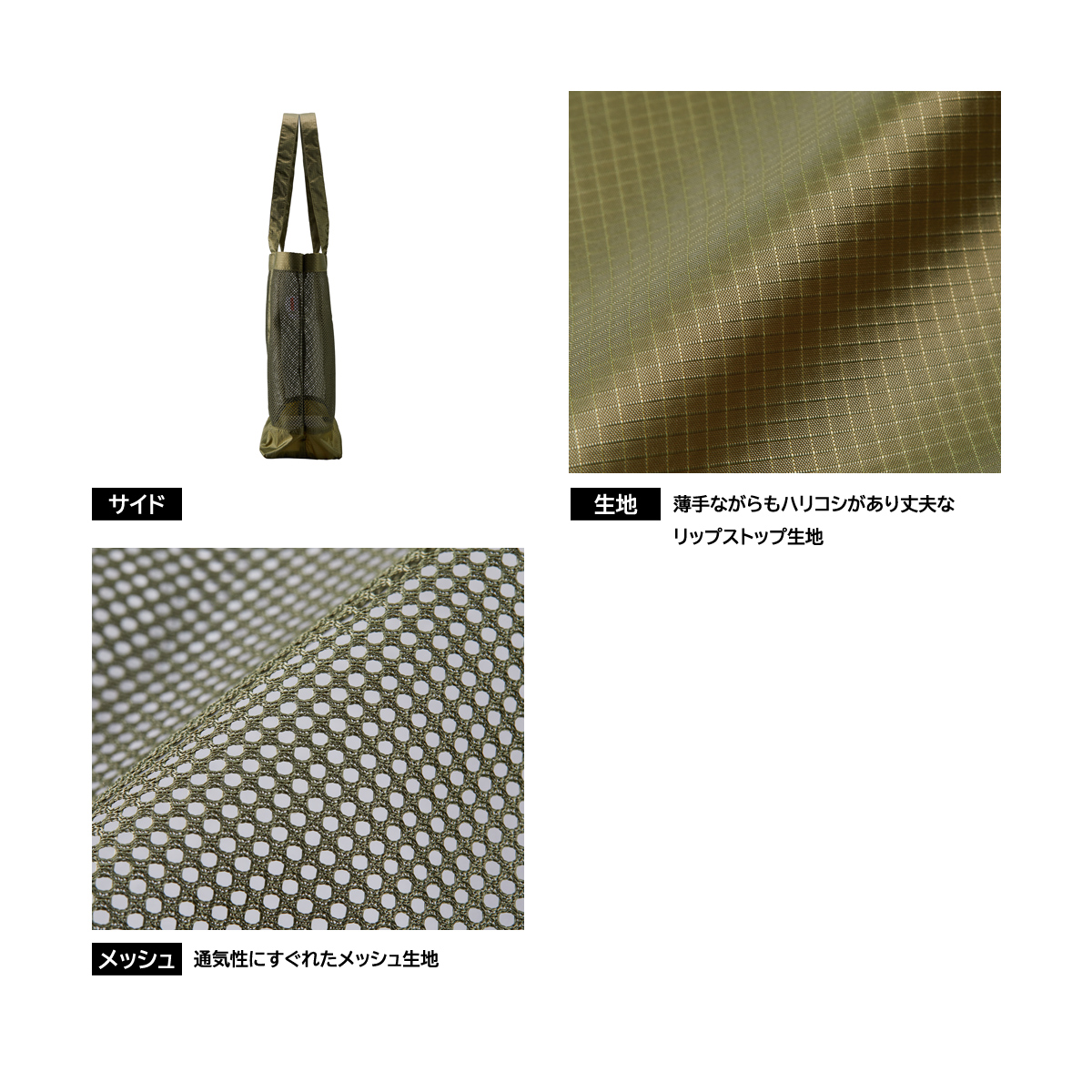 メッシュ×リップストップの透け感がクールなトートバッグ。