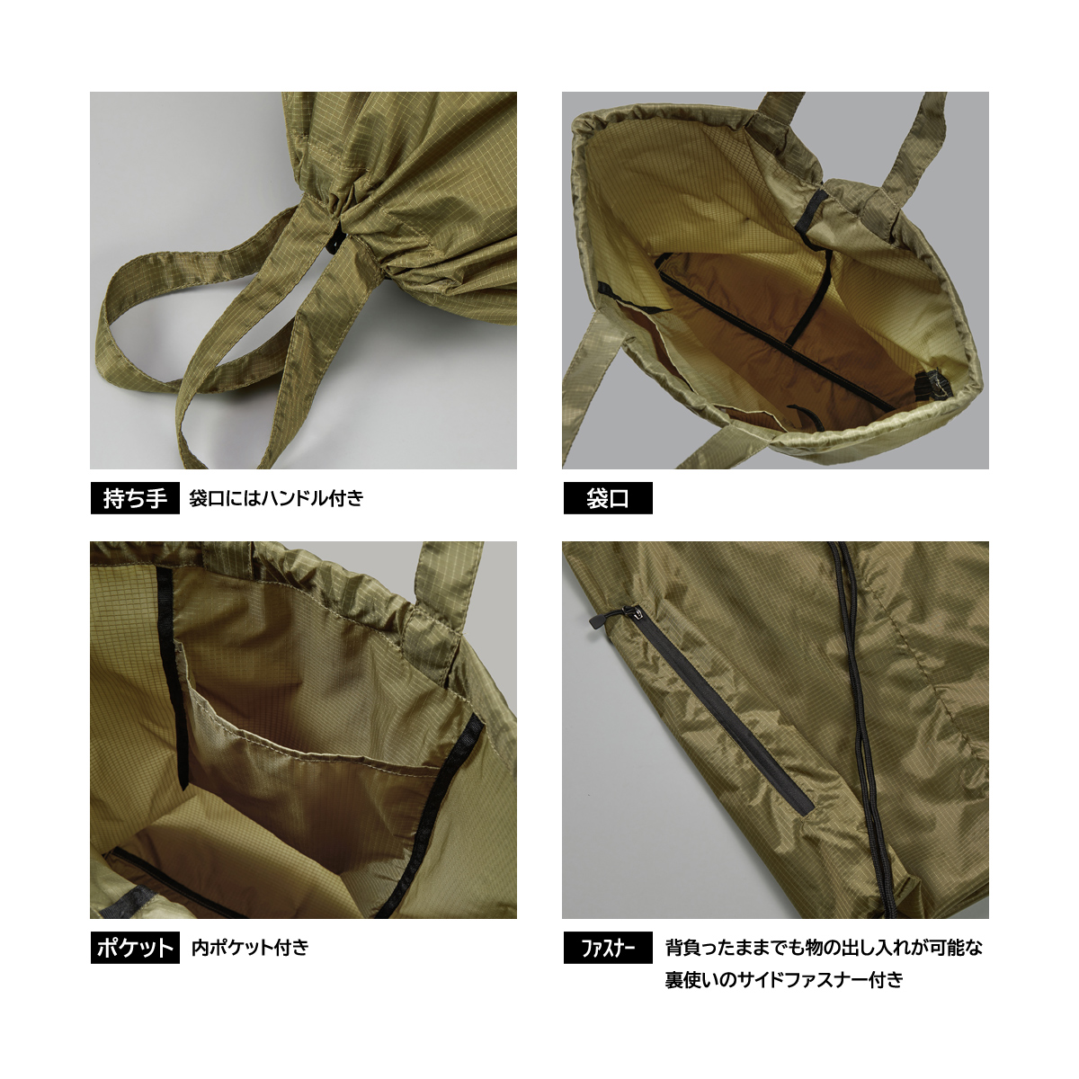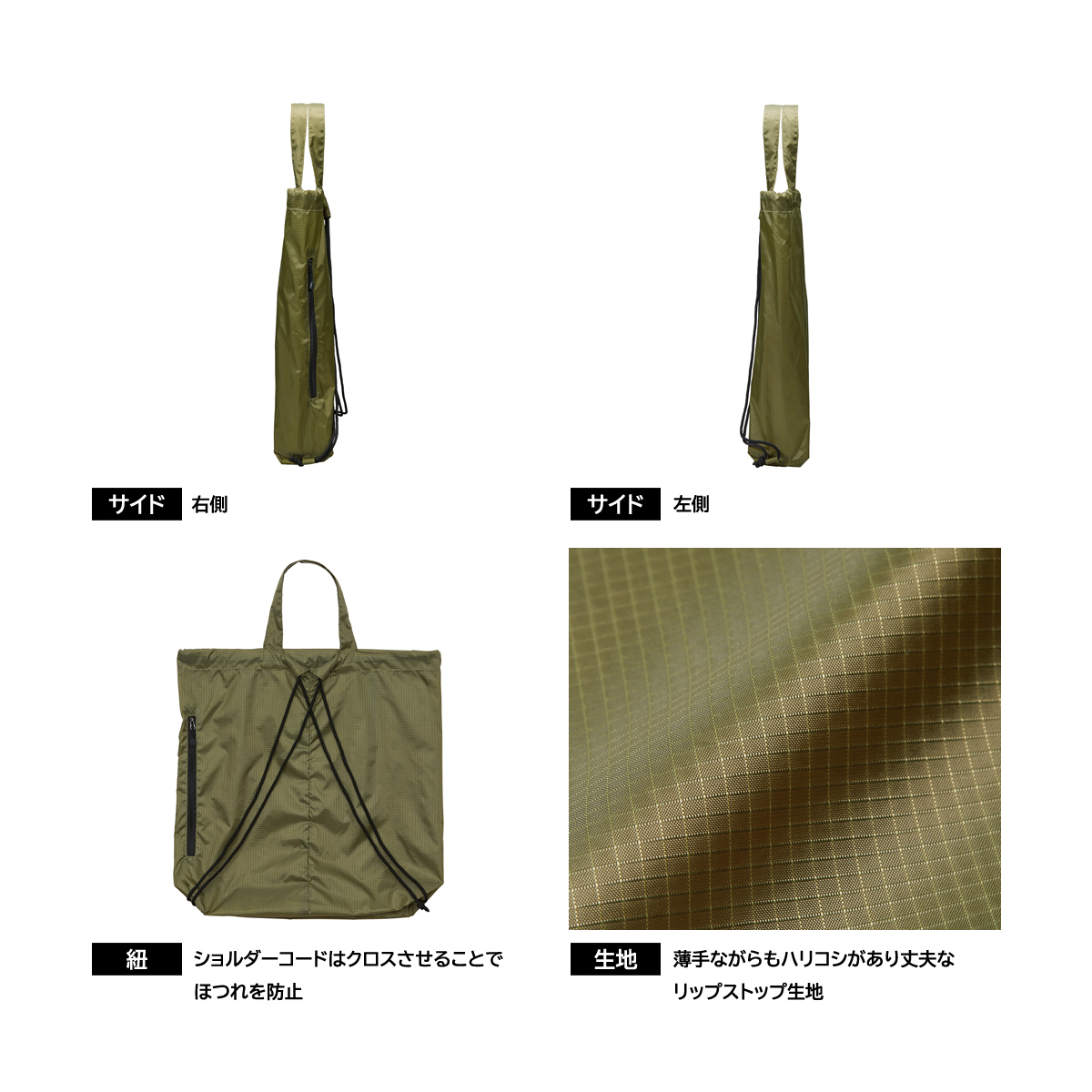 軽くて薄くて丈夫なジムサックは、アウトドア用品のテントなどに使われるほつれや破れに強い丈夫なリップストップ生地を採用。