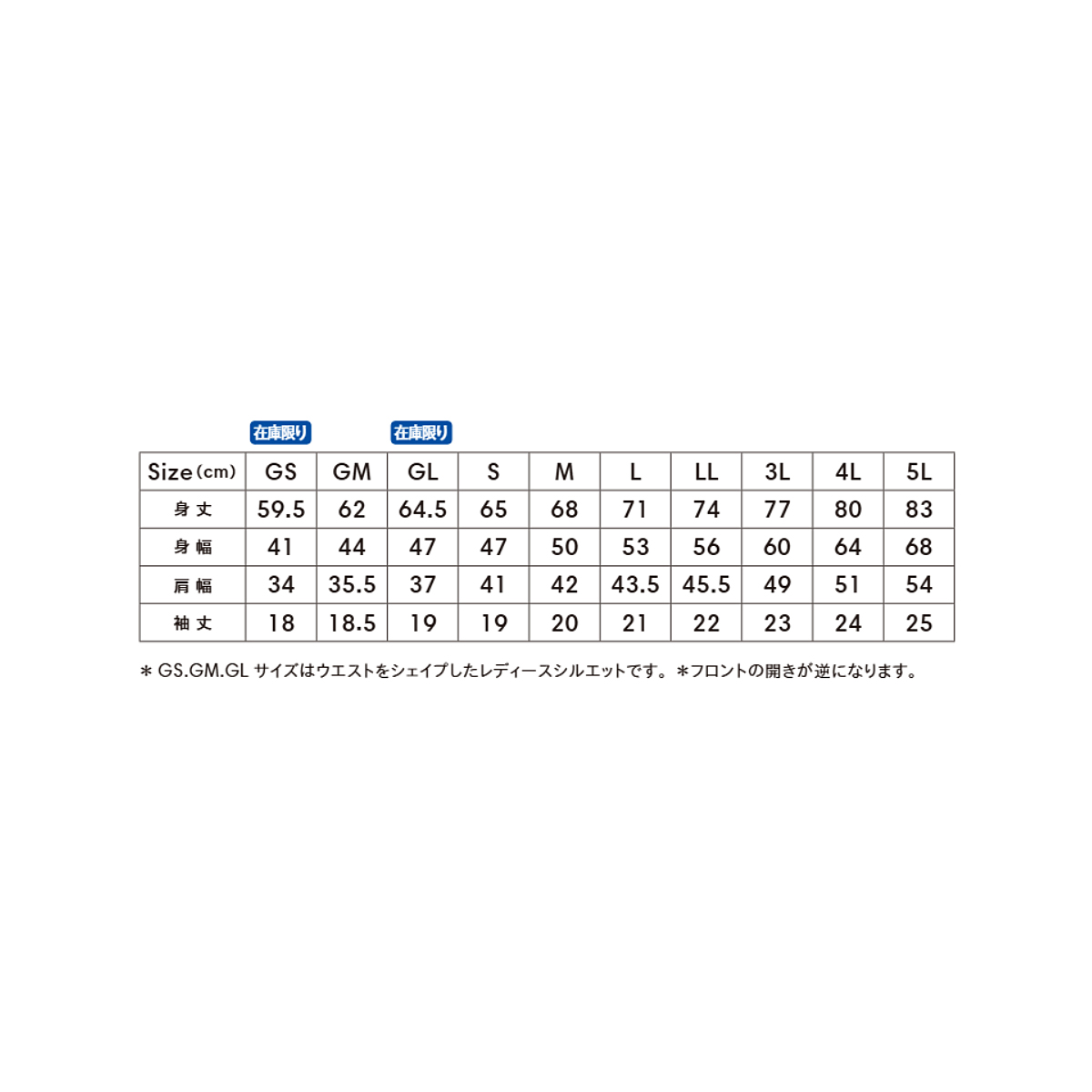 サイズはGSから5Lまで幅広く揃え、16色のカラーバリエーションも魅力です。