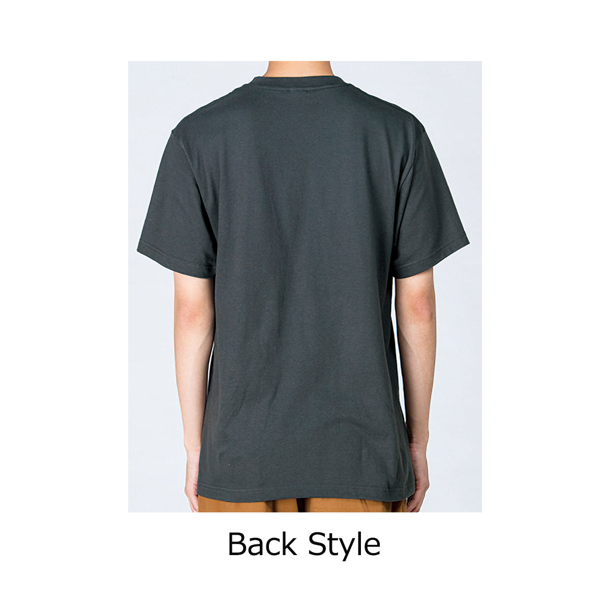00086-DMT 5.0オンス ベーシックTシャツへ前面左胸、背面右裾部分にDTF転写プリントを行いました。前面左胸横幅5cm、背面右下横幅10cmのサイズです。