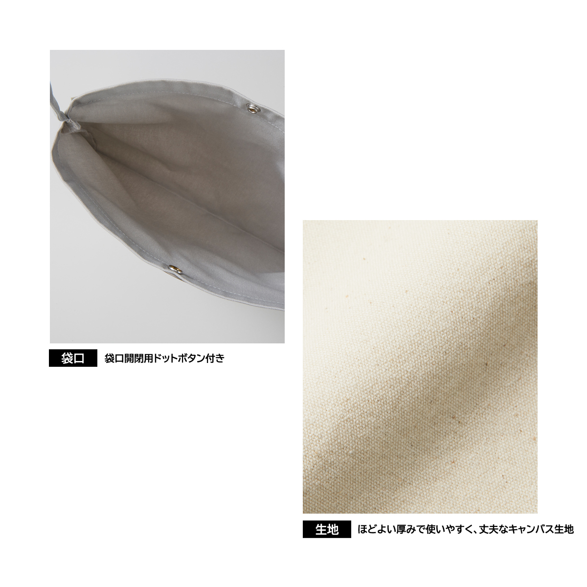 特徴:袋口ドットボタン付き