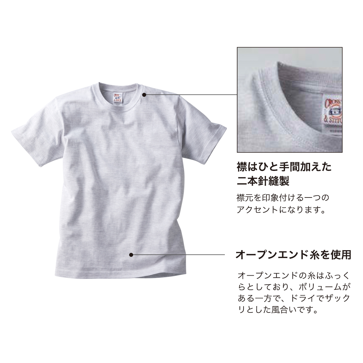 ※クールアッシュ、ヘザーグレーのみリングスパン糸使用