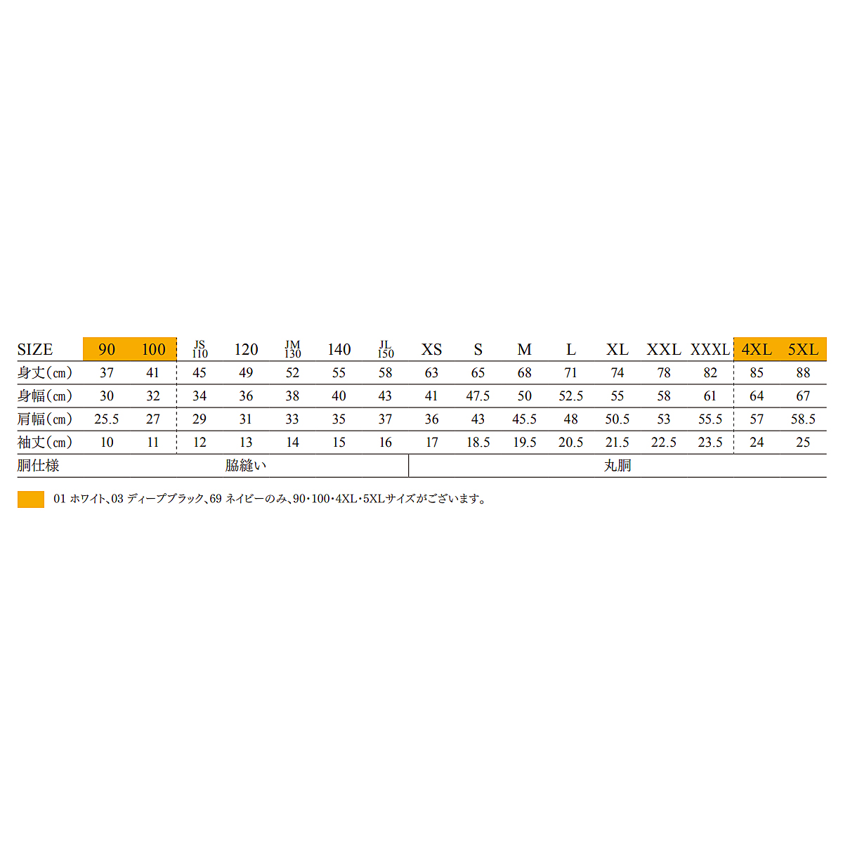 ※ホワイト、ディープブラック、ネイビーのみ、90・100・4XL・5XLサイズがございます。