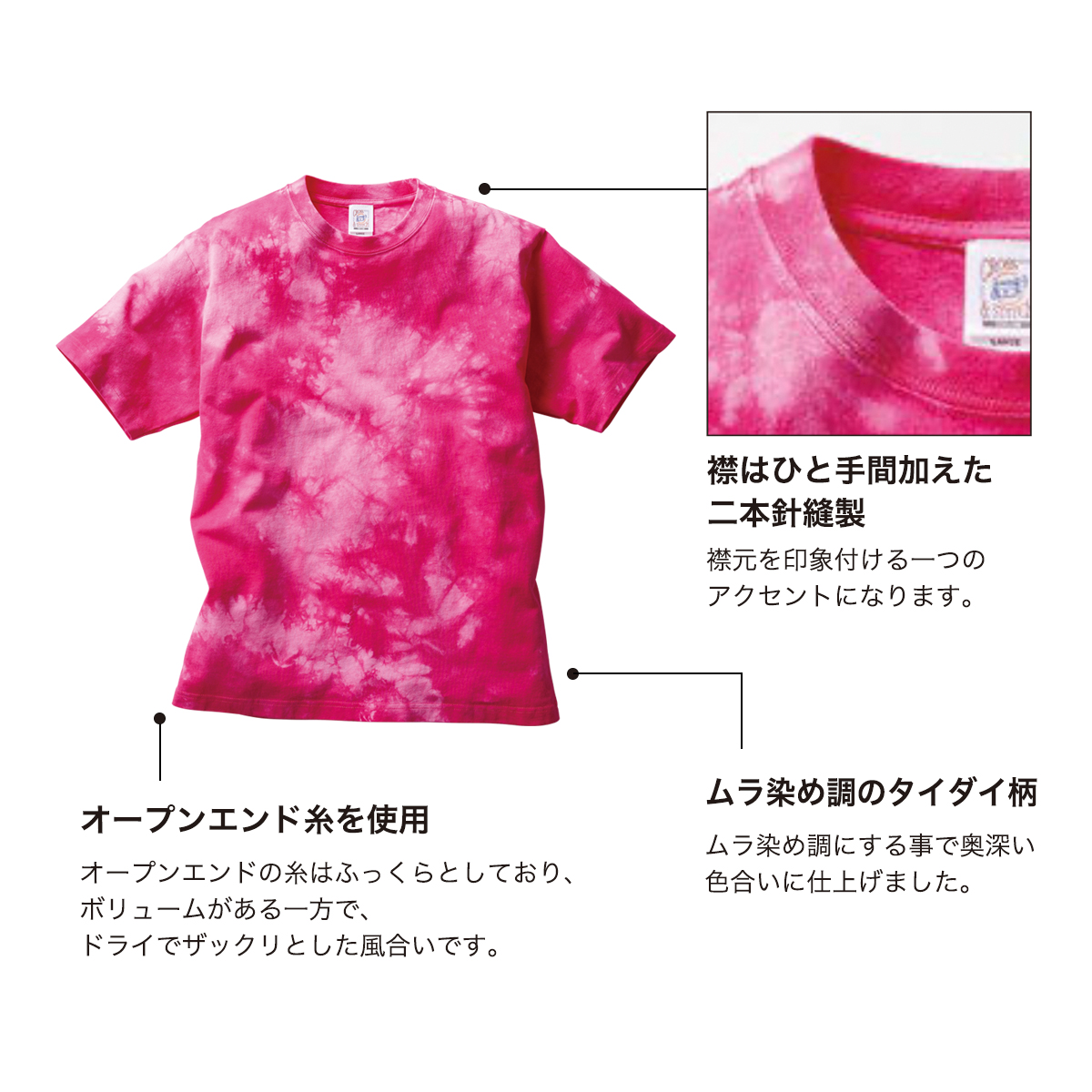 ※タイダイ染の製品は特性上、1枚1枚のタイダイ柄に個体差がございます。