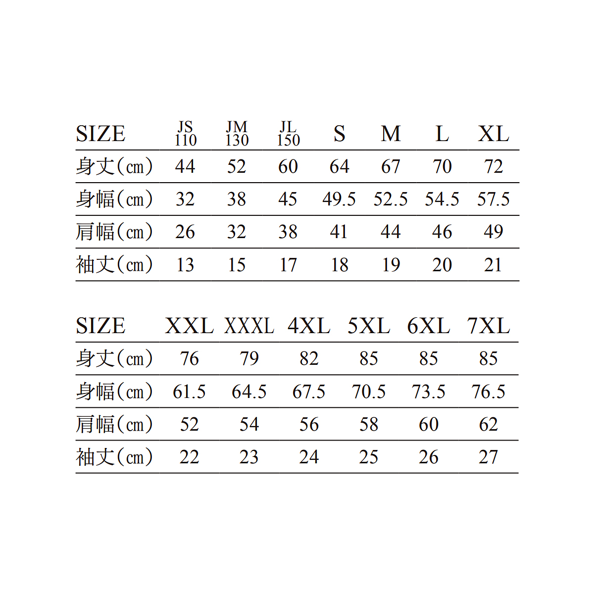 サイズ展開もキッズサイズから7XLまでと幅広いです。