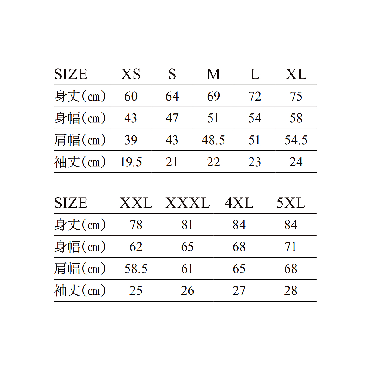 カラー XS S M L XL XXL XXXL 4XL 5XL