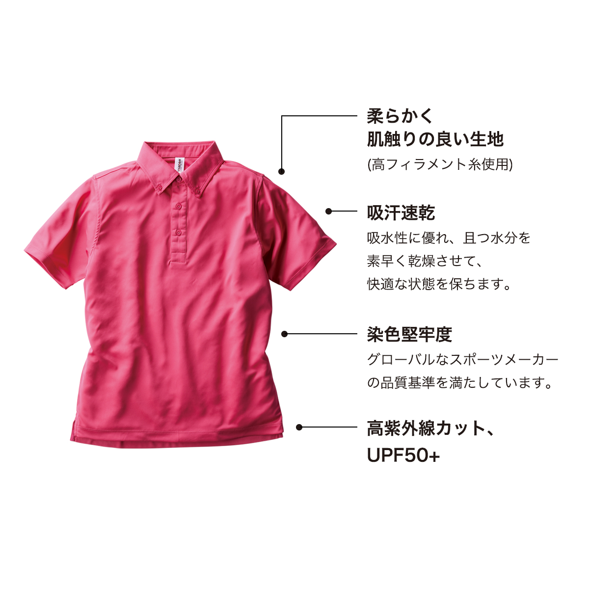 吸汗速乾、UVCUTなど機能も優れた両面フラットのファンクショナルドライBDポロシャツです。
