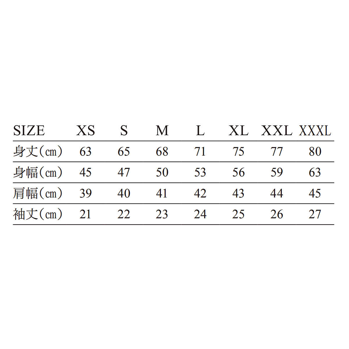 カラー XS S M L XL XXL XXXL