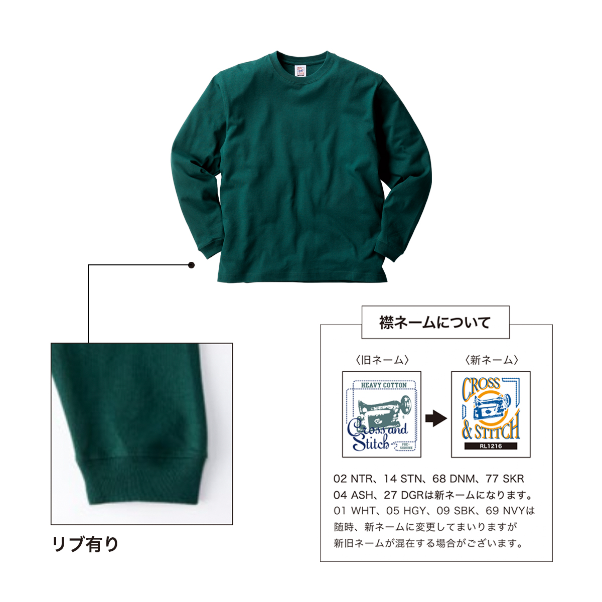 オープンエンド マックスウェイト ロングスリーブ Tシャツ(リブ有り)【RL1216】