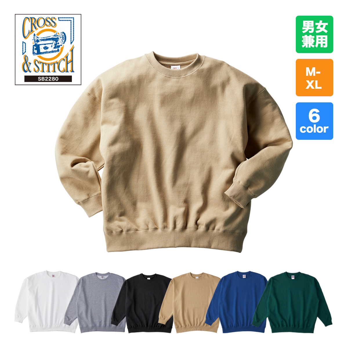 このビッグシルエットスウェットシャツに刺繡やプリント加工を入れて、オリジナルスウェットシャツ(オリジナルトレーナー)を作成しませんか。