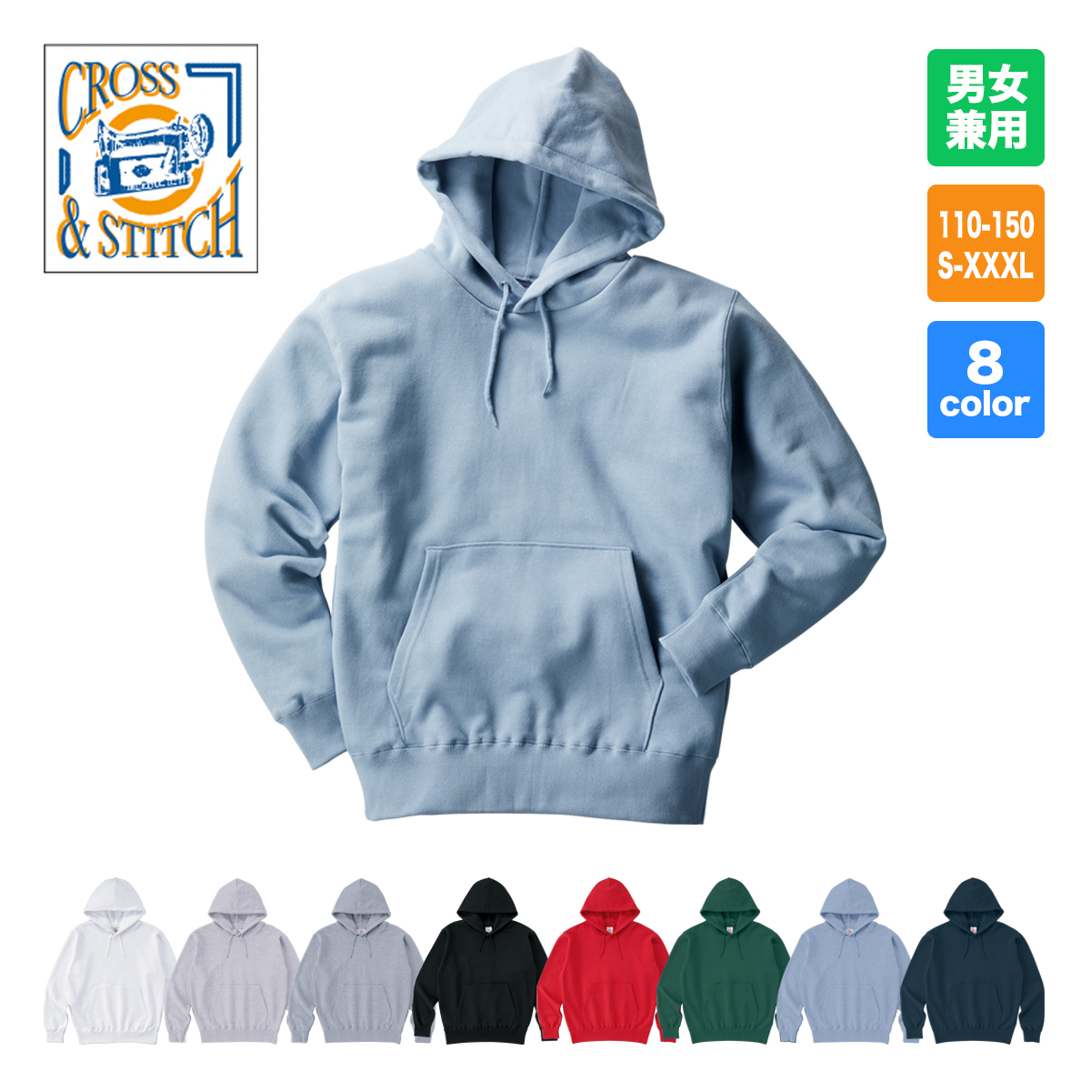 このスウェットパーカーに刺繍とプリント加工をしてオリジナルパーカー(オリジナルフーディー)を作成しませんか。