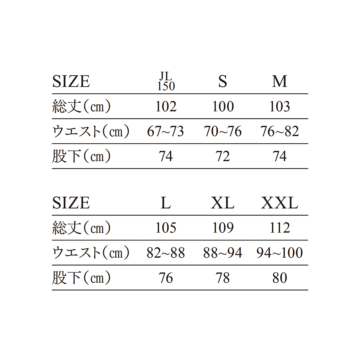サイズ:150(JL)、S~XXL