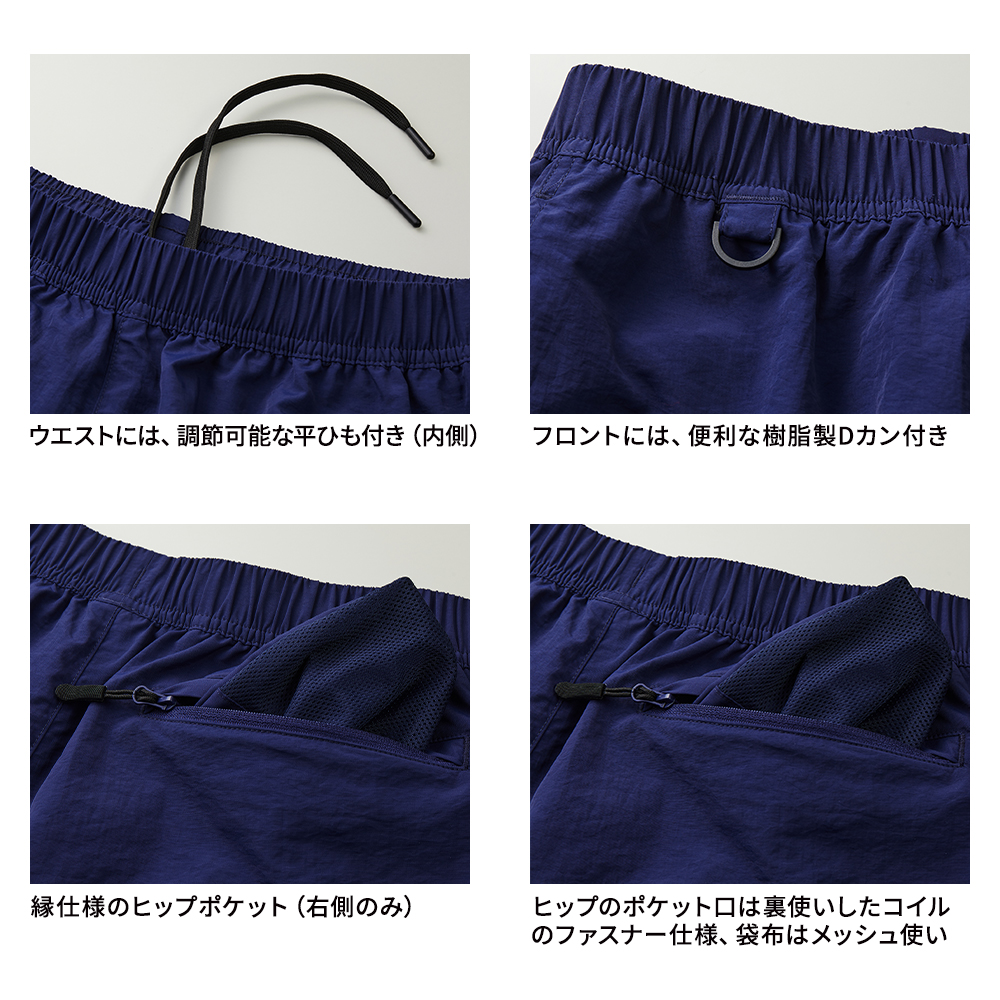 年齢、性別問わず着用できるシルエットと、絶妙な丈感にこだわったイージーショーツは、街中でもアウトドアやスポーツシーンでも活躍できる便利なアイテムです。