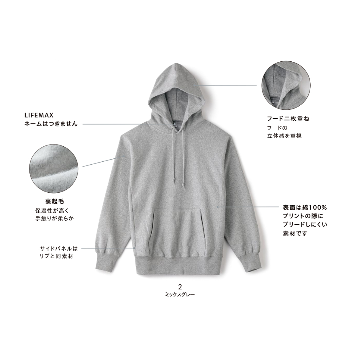 このプルオーバーパーカーに刺繍またはプリントをして、オリジナルパーカー(オリジナルフーディー)を作成してみませんか。