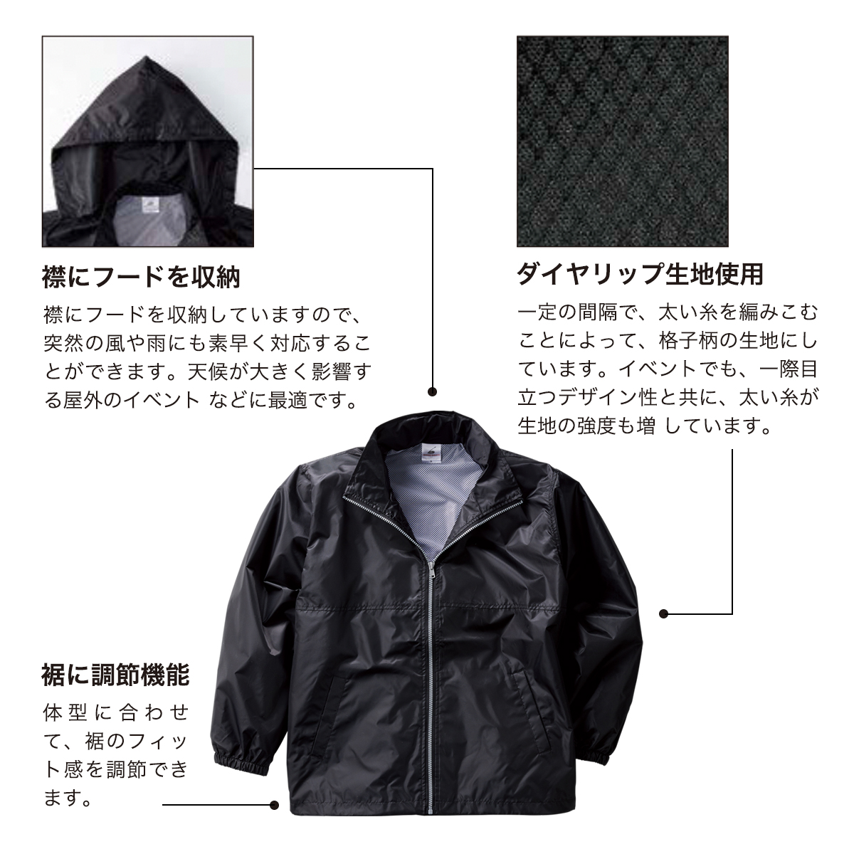 裂けや擦れに強く、透け防止仕様のダイヤリップ生地を使用した