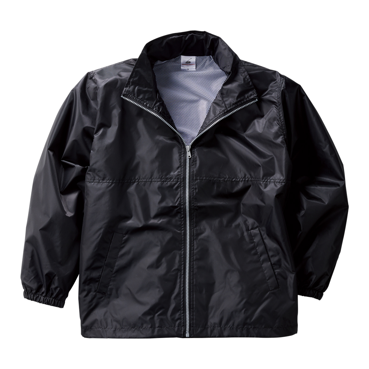お持込みのコーチジャケットにオリジナルロゴの刺繍を行いました。同じロゴでもジャケットによって印象が変わります。サイズは横11cm。糸色はホワイト(23-98)