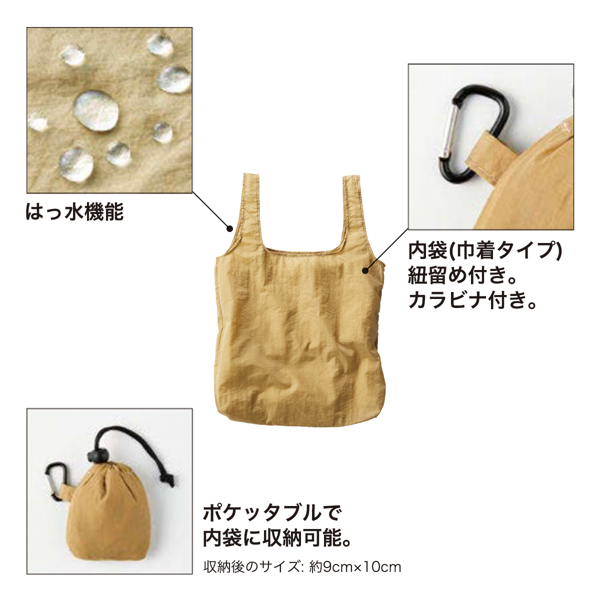 ポケッタブルで内袋に収納可能。 収納後のサイズ:約9cm×10cm