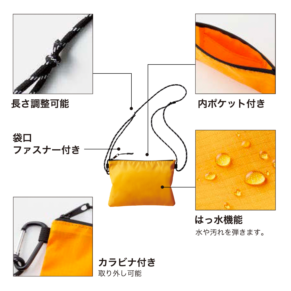 長さ調整も可能。内ポケットもついています。