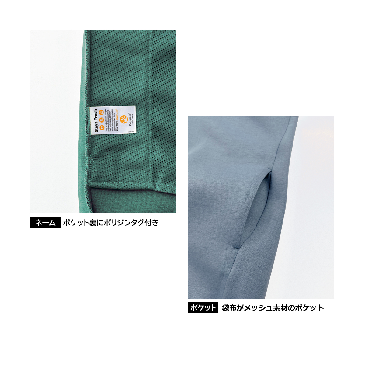 優れたPOLYGIENE技術を採用し、抗菌・防臭機能で清潔感を保ちます。