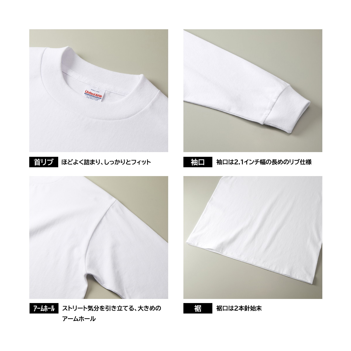 5089 4.7オンス ドライシルキータッチ ロングスリーブ Tシャツに白インクでシルクスクリーンプリントを行っています。背面サイズ:横36cm、右袖サイズ:横7cm