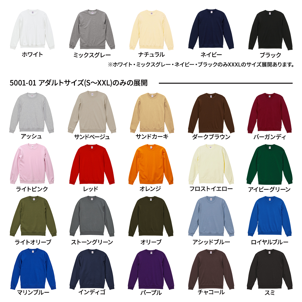 ※XXXLはホワイト・ミックスグレー・ブラック・ネイビーのみです。