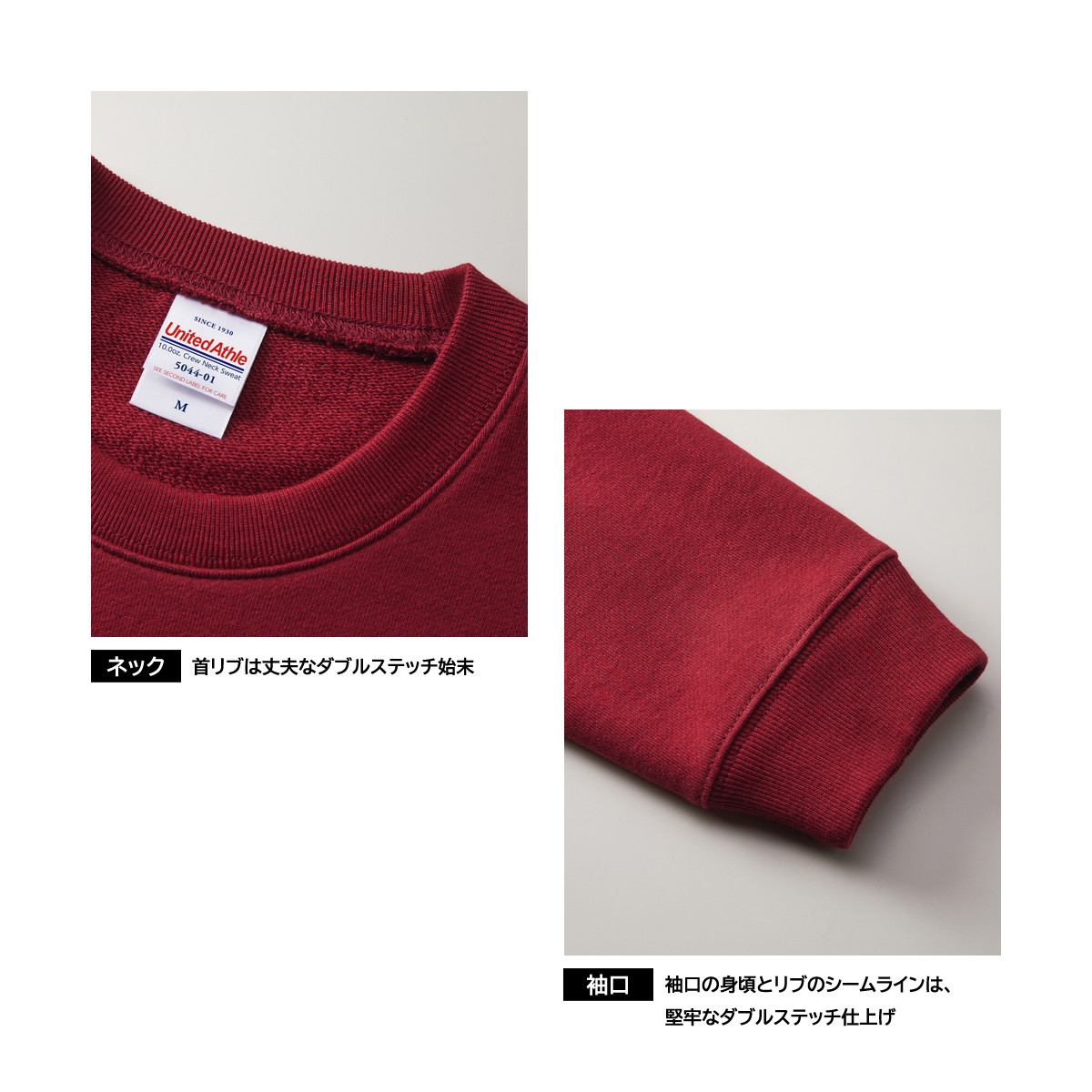 United Athleのスウェットの中でも人気の裏パイルシリーズ。抜群の肌ざわりと吸水性、オーソドックスなデザインがロングセラーの秘訣。